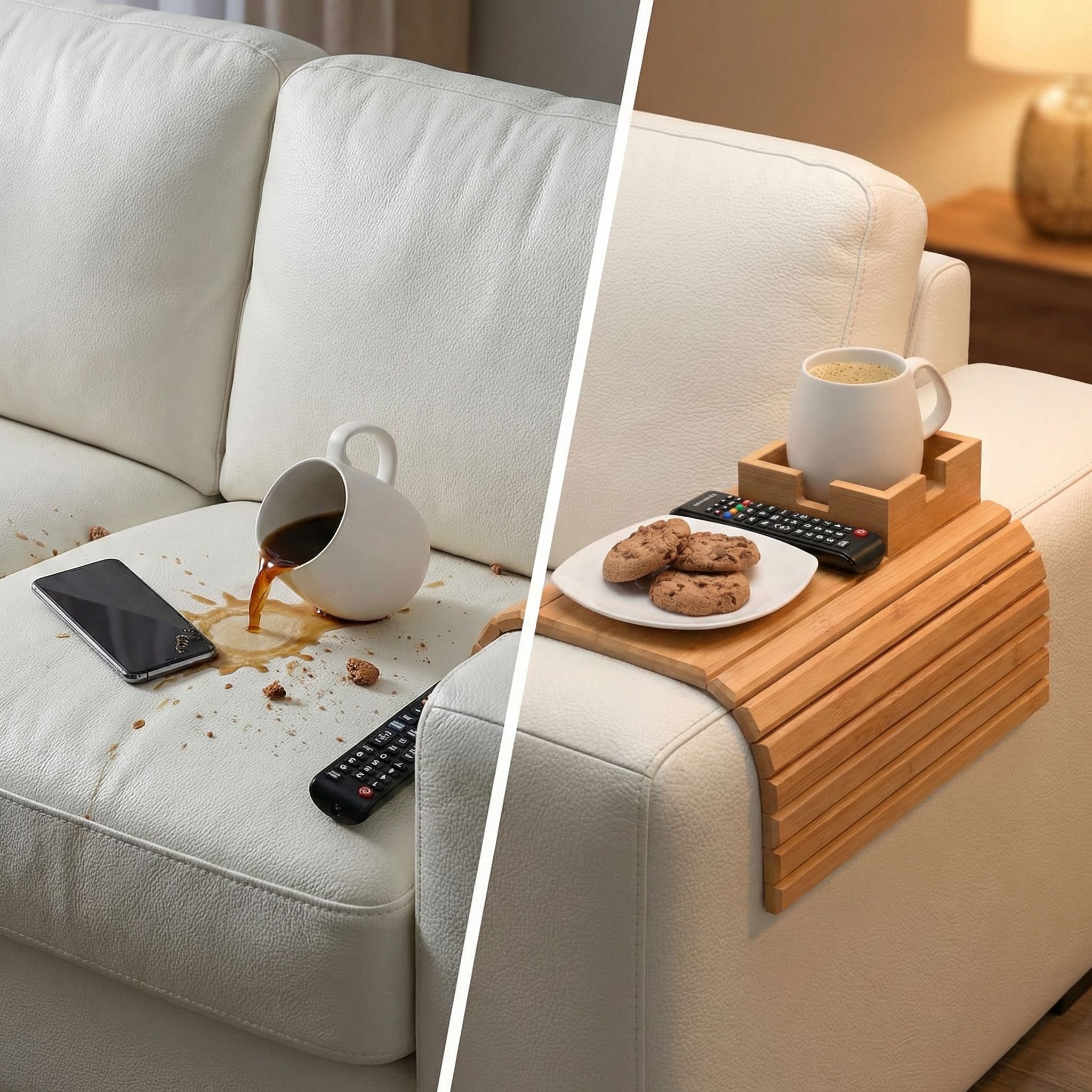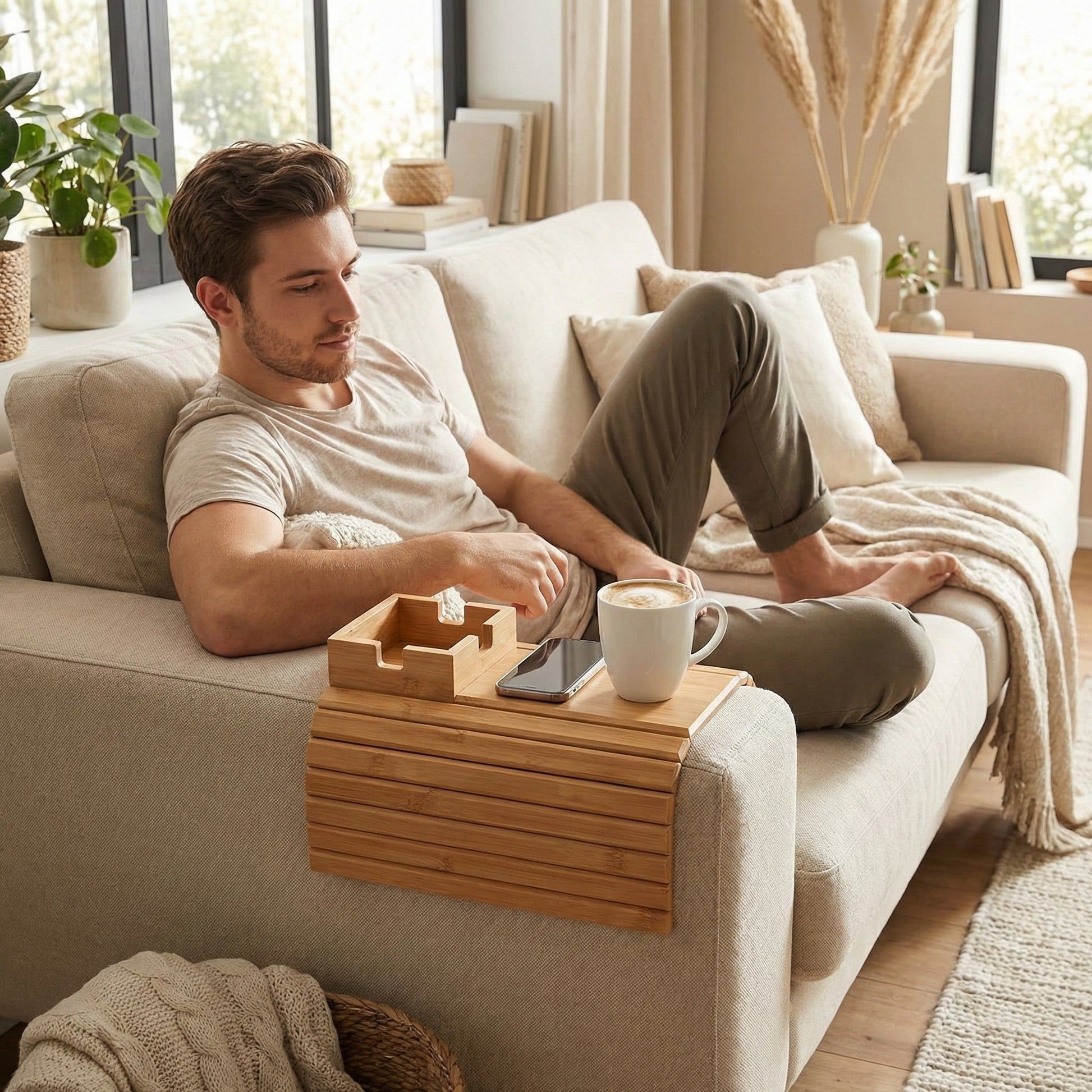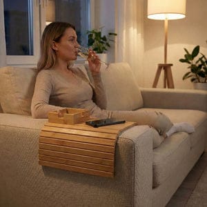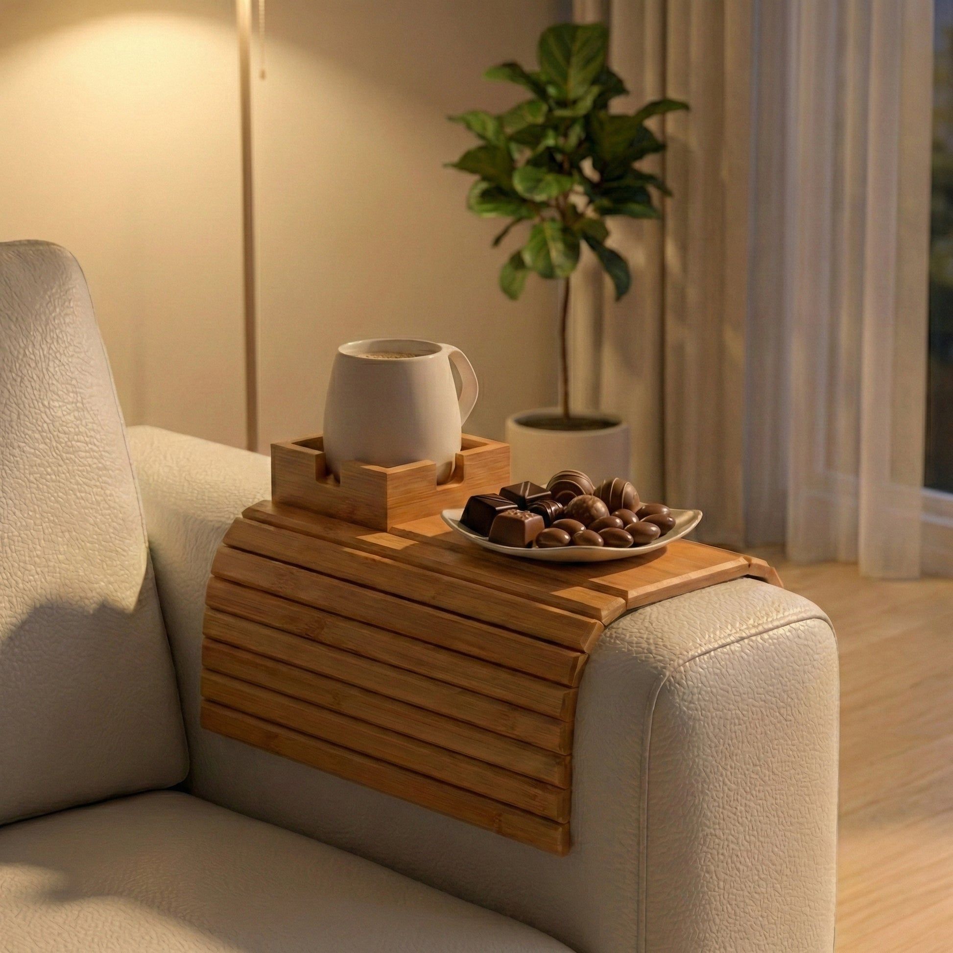 Keyif Köşem, koltuğunuzun konforunu artırmak için tasarlanmış şık ve fonksiyonel bir ahşap tepsidir. Dökülmelere veda edin ve tüm eşyalarınızı elinizin altında tutarak keyfinizi katlayın.